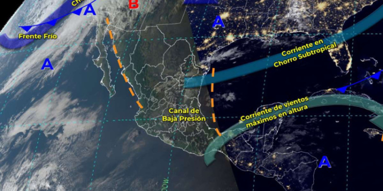 Este fenómeno ocasionará precipitaciones que pueden acompañarse de descargas eléctricas y condiciones para la caída de granizo, en estados del norte, centro, sur y sureste de México.