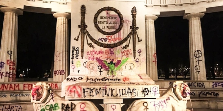 A la movilización se siguen sumando mujeres y se calcula que hasta el momento el grupo está integrado por mil 500 personas; a su paso algunas de ellas destrozan vitrinas sobre Paseo de la Reforma y parabuses, como es el caso de la estación Hamburgo del Metrobús.