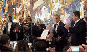“El Santo llena muchos espacios, mucha esperanza, mucho de lo que la gente quiere, cuando ve la máscara, la capa, personifica en El Santo la lucha diaria que tenemos en la vida”, apuntó el mandatario en conferencia de prensa, donde también le entregó un reconocimiento al heredero del ‘Enmascarado de Plata’ por la brillante trayectoria de su padre.