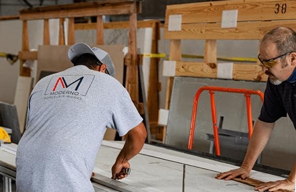El proyecto de inversión Moderno, que nació en 2019, permite la creación de talleres de fabricación e instalación de paneles de porcelana en gran formato en lugares estratégicos del territorio estadounidense. Emilio explica que con cada taller HEB5 crea más de 50 empleos directos que se rigen por el modelo de contratación W2, forma oficial del Servicio de Impuestos Internos (IRS) del gobierno de EU. Los empleados con este esquema cuentan con todos los beneficios de ley y 35 horas de trabajo a la semana, añade el directivo de HEB5.