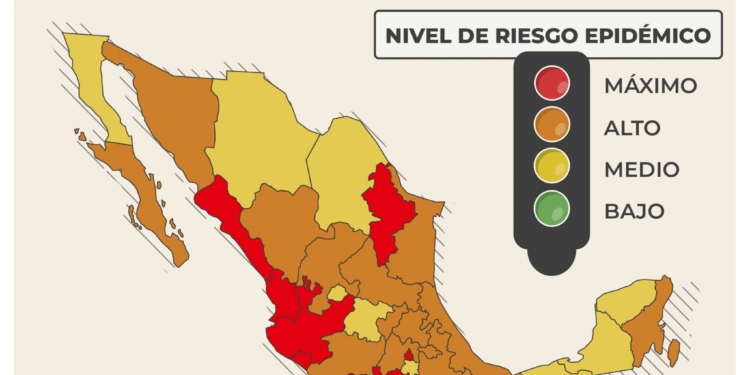 A la par, entidades como Aguascalientes y Coahuila retrocedieron de color verde a amarillo, sumándose a Baja California, Chihuahua, Guanajuato, Morelos, Tabasco, Campeche y Yucatán.