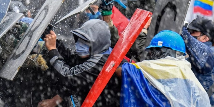 Bogotá, Colombia-. Miles de personas salieron nuevamente a las calles de Colombia en el comienzo del segundo “paro nacional” de protesta contra el Gobierno del presidente Iván Duque, después de una semana de intensas manifestaciones y violencia con decenas de muertos.