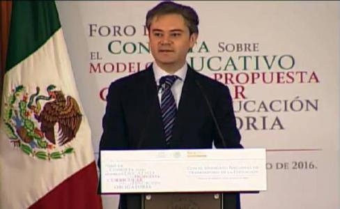 “Aquí hay un sindicato que trabaja en favor de maestros y maestras, que lo hace privilegiando el derecho que tienen las niñas y niños a una educación de calidad, sin afectar a terceros y sin afectar a la sociedad mexicana”, señaló el funcionario durante el foro de consulta sobre el Modelo Educativo 2016 con representantes del SNTE.