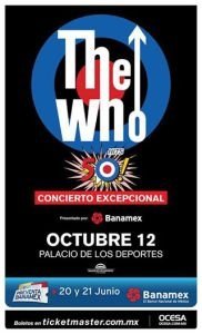 CIUDAD DE MÉXICO, 13 de junio (Al Momento Noticias).- Por primera vez, los fans mexicanos serán testigos de la energía, el poder y la rebelión de uno de los actos de rock más grandes de la historia, The Who, para cantar himnos como “Won’t Get Fooled Again”, “My Generation”, “Baba O’Riley”, “Who Are You”, “I Can’t Explain”, “Pinball Wizard”, “Behind Blue Eyes” y muchos más el 12 de octubre de 2016 en el Palacio de los Deportes de la Ciudad de México.