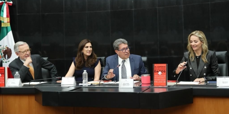 Al centro, la senadora panista Kenia López Rabadán, a su izquierda el senador Ricardo Monreal Avila y a su derecha, el Periodista López-Dóriga. Una gráfica que llamó la atención por el contenido del libro.