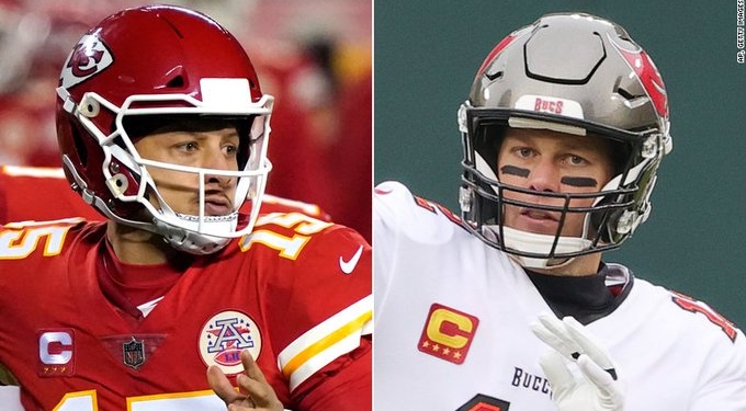 El Super Bowl LV es el primer Super Bowl en el que se enfrentan los mariscales de campo que ganaron los dos Super Bowls más recientes (Mahomes ganó el Super Bowl LIV con Kansas City; Brady ganó el Super Bowl LIII con New England] y el primer Super Bowl entre mariscales de campo titulares que cada uno ya haya ganado al menos un premio de Jugador más valioso de la liga de Associated Press y uno de Jugador más valioso del Super Bowl antes del enfrentamiento.