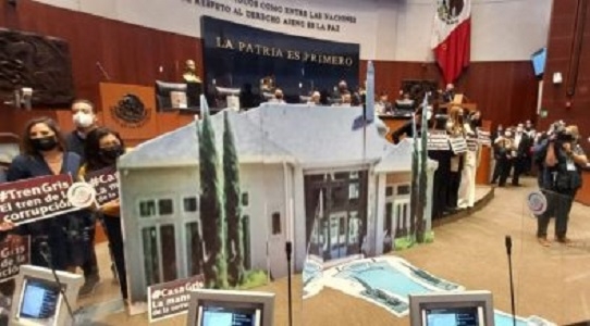 Luego de que durante varias sesiones se han negado a discutir las propuestas y ante el voto en contra de Morena para modificar el orden del día con este fin, legisladores panistas reclamaron la falta de transparencia en el Senado y mostraron ante el pleno una imagen de la Casa Gris que ha sido exhibida como parte de las denuncias por corrupción en contra de José Ramón López Beltrán.