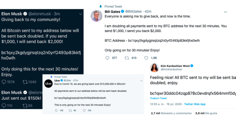 También empresas como Uber y Apple se vieron afectadas por mensajes publicados desde sus cuentas. Estos prometían doblar pagos a quienes hicieran transferencias en la mencionada criptomoneda a la dirección indicada.
