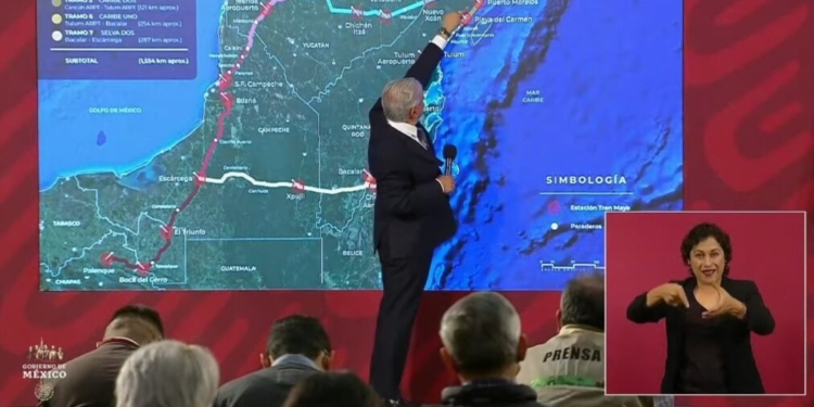En la conferencia Mañanera de este lunes, el mandatario federal dedicó 35 minutos a dar una explicación detallada del proyecto y sus beneficios; destacó que llegando a Tulum hay cenotes, pero el proyecto contempla viaductos para pasar por ahí sin tocarlos, sin dañarlos.