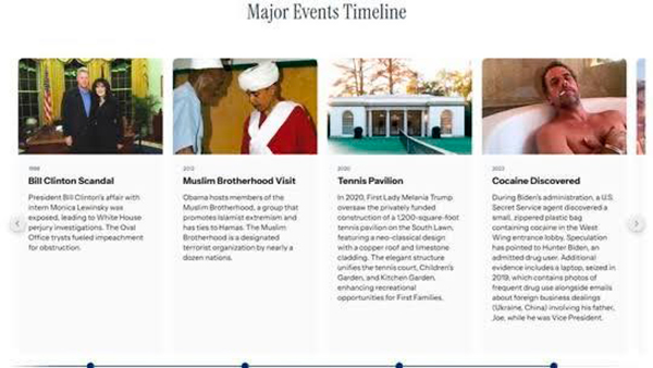 En la página oficial de la Casa Blanca se ve a Clinton con Lewinsky, una foto de Obama en la que se pretende retratarlo como un musulmán radical (es cristiano) o a Hunter Biden, el hijo de Joe Biden.