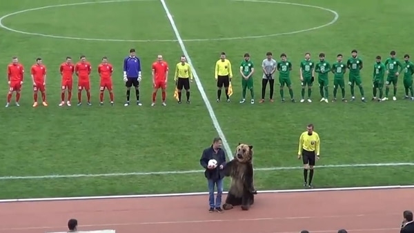 CIUDAD DE MÉXICO, 17 de abril (AlMomentoMX).— Una polémica escena se dio previo al partido entre el Masjoek y el Angoesjt, equipos de la tercera división del fútbol de Rusia. Durante el inicio del juego, un oso apareció sobre el terreno de juego para realizar la entrega del balón al árbitro.