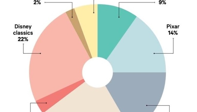 La gráfica de pastel proporcionada por The Hollywood Reporter también exhibe los porcentajes menores de visualizaciones pertenecientes a Pixar, películas y series originales de Disney Channel, Los Simpson, National Geographic y contenido original de Disney Plus.