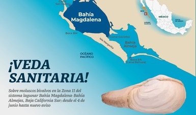 Comisión Nacional de Acuacultura y Pesca (Conapesca) anunció que habrá veda sanitaria de extracción, comercialización y consumo de moluscos bivalvos en parte del complejo lagunar Bahía Magdalena-Bahía Almejas, Baja California Sur.