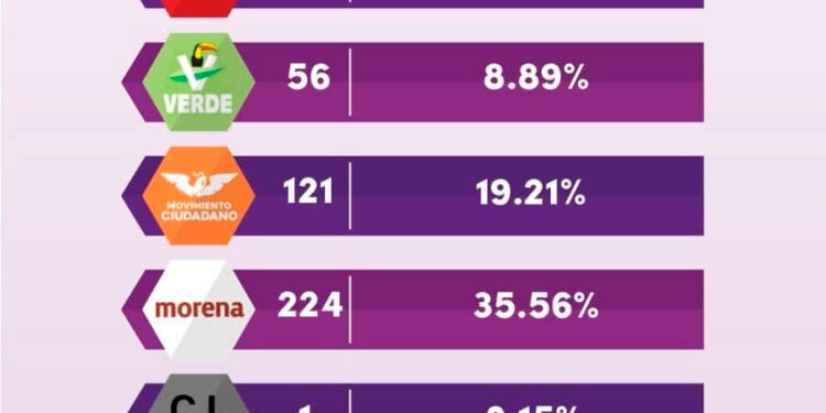 Ya que los números de como quedaron el total de las regidurías en Veracruz, fue de la siguiente manera.. MORENA tuvo 224, que representa el 35.56 por ciento; Movimiento Ciudadano logró 121, que es el 19.21 por ciento; Partido del Trabajo obtuvo 79, que es el 12.54 por ciento.. Mientras que el PAN logró 77, que son el 12.2 por ciento.. El PRI tiene 62, que es el 9.84 por ciento.. El PVEM logró 56, que es el 8.89 por ciento.. Y el resto de las 3 regidurías fueron para candidatos independientes, que es el 0.15 por ciento.. Dando un total de 622 cargos edilicios, que es el 98.69 por ciento.. Pero la “LECTURA” de todo esto.. Es la siguiente..