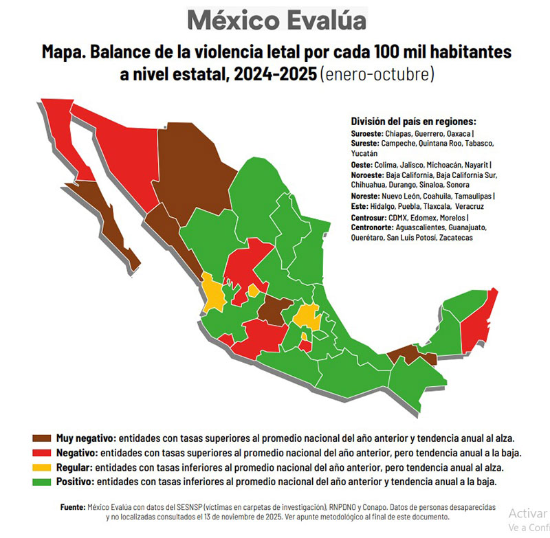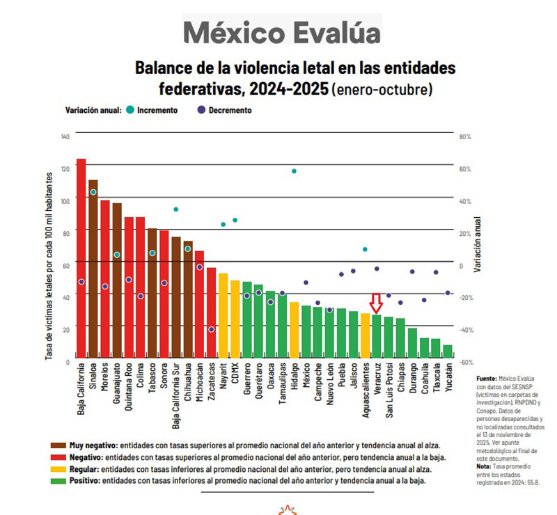 México Evalúa, con su rigor metodológico, señala algo que desde hace años debería ser evidente: la violencia en el país es regional, no sistémica. Se concentra en unos cuantos estados que viven dinámicas criminales específicas y que arrastran rezagos institucionales crónicos. En contraste, entidades como Veracruz exhiben control, estabilidad y capacidades en ascenso. Reducir la realidad del país a la narrativa apocalíptica de unos pocos no solo es impreciso, sino profundamente irresponsable.