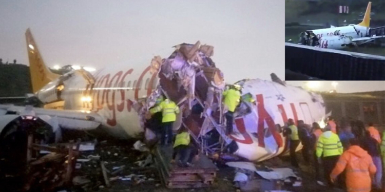 De acuerdo con la cadena turca NTV, el avión de Pegasus Airlines intentó aterrizar pero se salió de la pista y se partió en tres.
